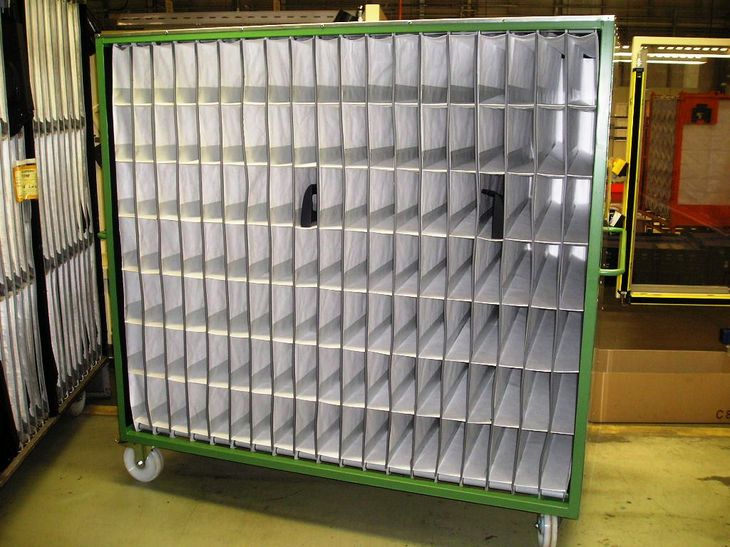 - Rollwagen mit textiler Gefachekonstruktion für Kunststoffteile